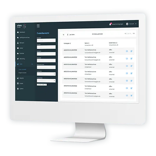 Starten Sie in nur wenigen Tagen mit einem Programm, das Ihre Kunden lieben werden. Wir liefern die Technologie und alle Services, um Ihre Marketingkampagnen noch erfolgreicher zu machen. In nur 3 Minuten stellen Sie mit wenigen Klicks Ihre individuelle Kampagne zusammen, um Prämiencodes für Ihre Kunden zu generieren, die dann im unternehmenseigenen Prämienportal eingelöst werden können.